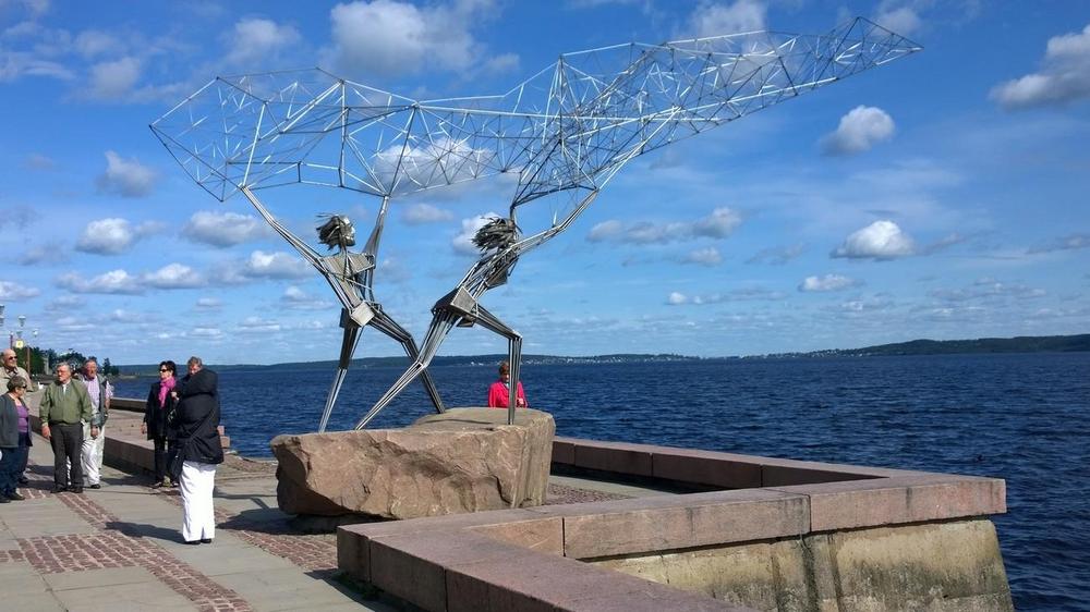 Seuraava matkapäivä alkoi kävellen opas Ksenian johdolla Pietari Suuren patsaalle saakka pitkin Äänisen rantakatua, jonka varteen on pystytetty eri ystävyyskaupunkien lahjoittamat taideteokset. Rantakadun nähtävyyksien katselun jälkeen jatkoimme kieroajelua linja-autolla kaupungin keskustaan. Illapäivällä meille retkeläisille oli järjetetty Kantele-yhtyeen reilun tunnin pituinen konsertti. Konsertti oli tämän reissun kohokohta. Yhtye esittää suomalaista, karjalaista, vepsäläistä ja venäläistä kansannmusiikkia, lauluja sekä kansantasseja. Ohjelma on erittäin korkeatasoista ja taidokasta, joten monelle esitys jäi mieleen ainutlaatuisena ja miellyttävänä kokemuksena.