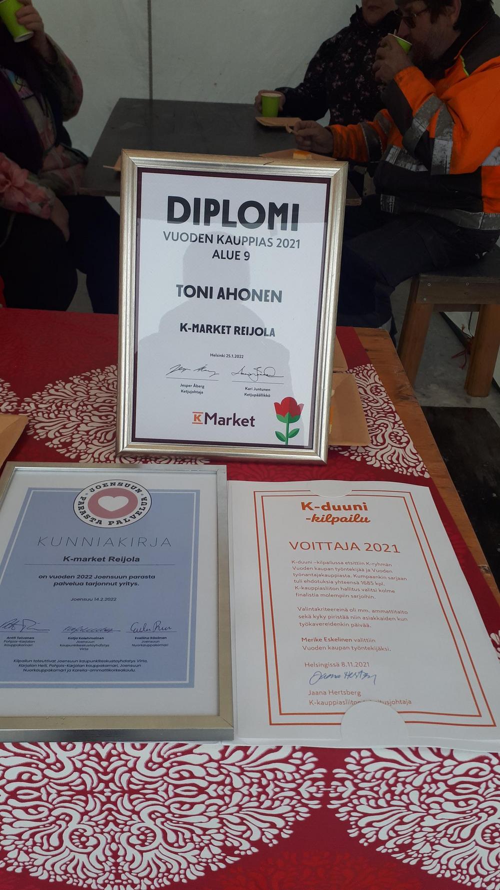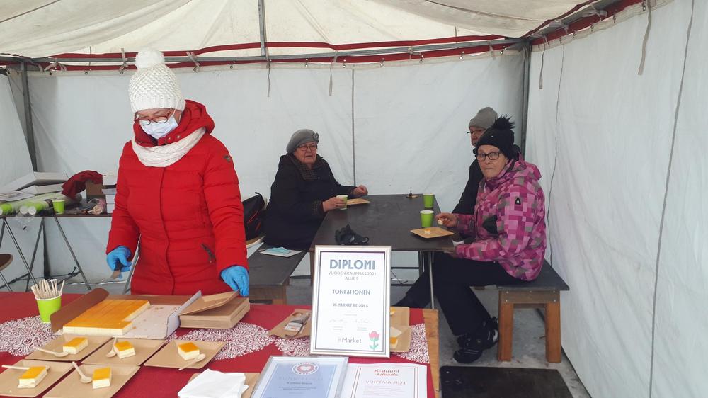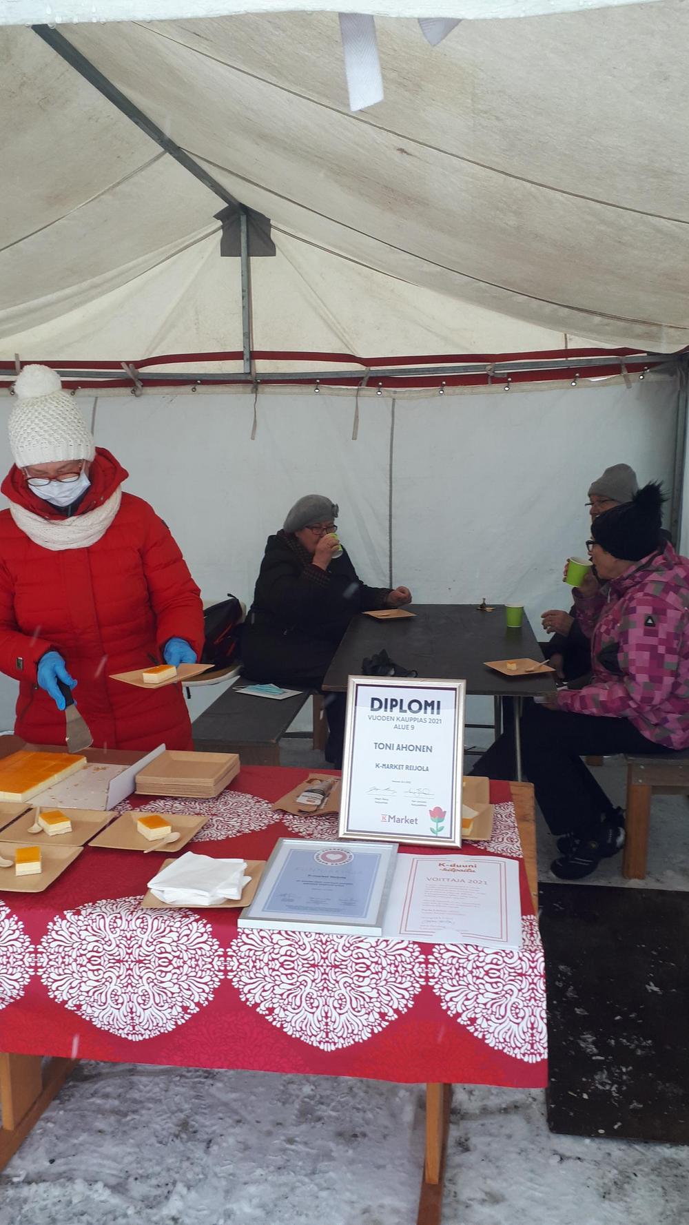 Kahvitustilaisuus Reijolan K-Marketissa 17.2.2022. Vuoden 2021 kauppiaskilpailun johdosta.